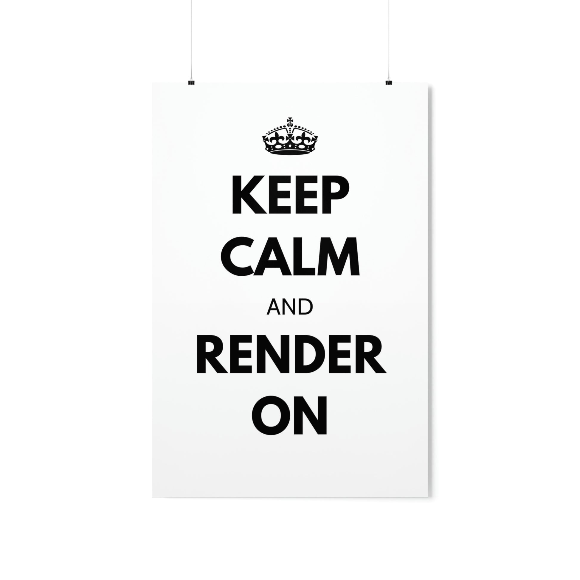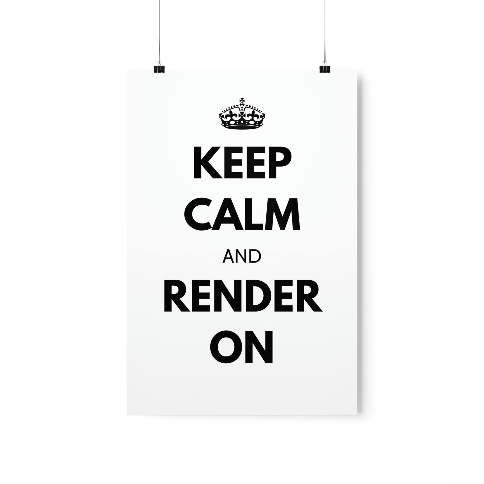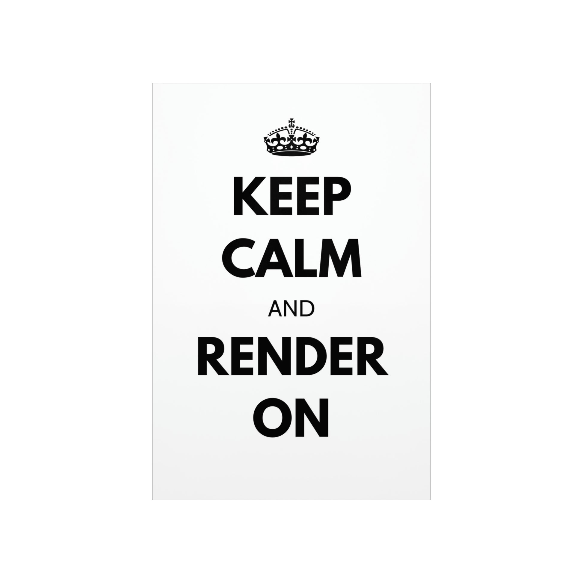 Crafted with museum-grade paper and printed with top-tier pigmented archival inks, this poster boasts a stunning end result that will take your breath away. Whether you're looking to spruce up your home office or add a touch of inspiration to your workspace, our "Keep Calm and Render On" poster is the perfect solution.