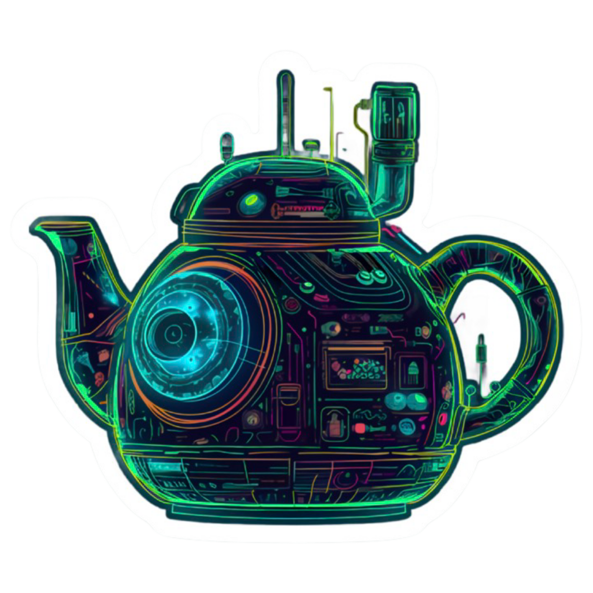 Futuristic Neon Teapot Sticker