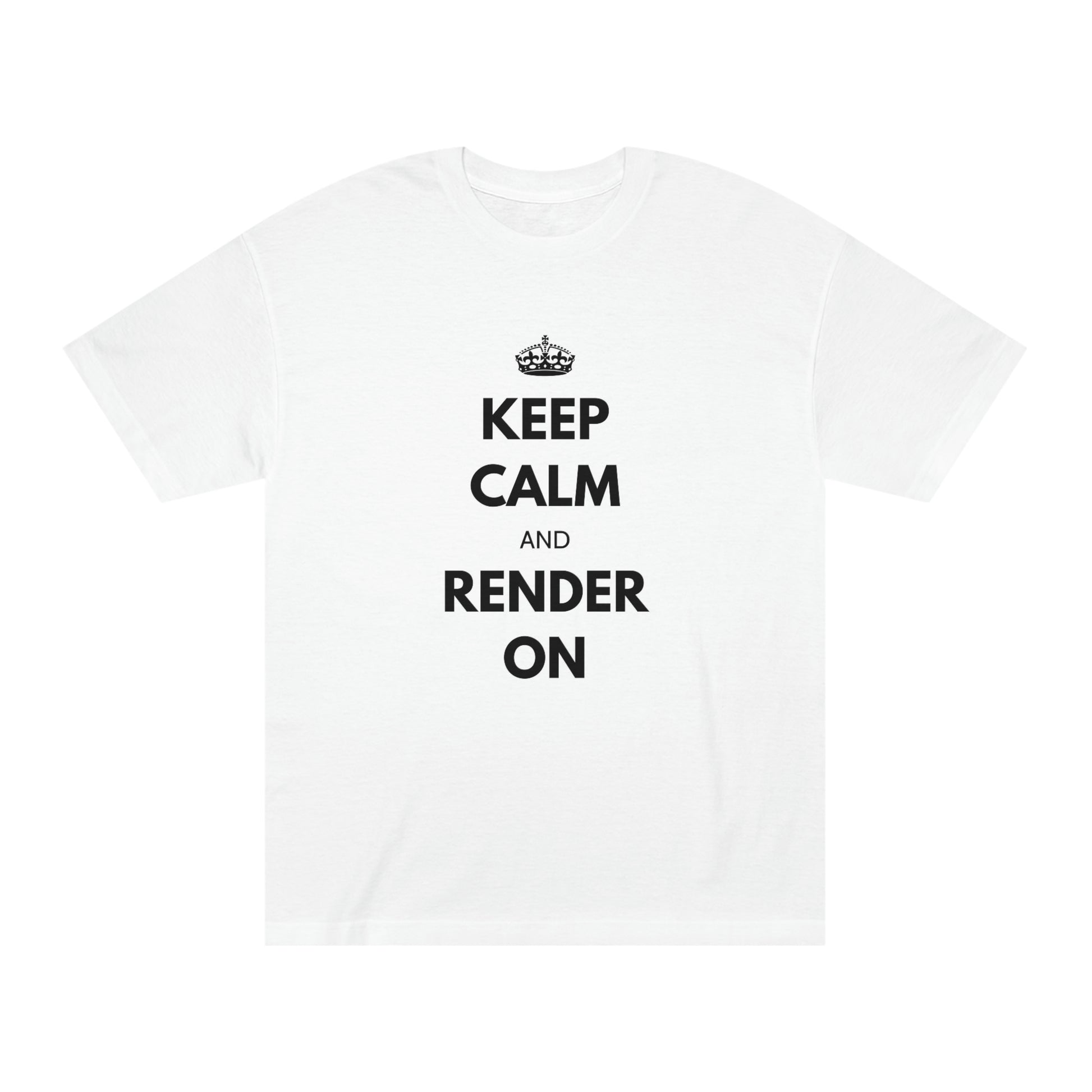 Whether you're a professional 3D artist, programmer, or just someone who loves digital design, the "Keep Calm and Render On" t-shirt is a must-have item that will show off your passion for your craft in a fun and creative way.