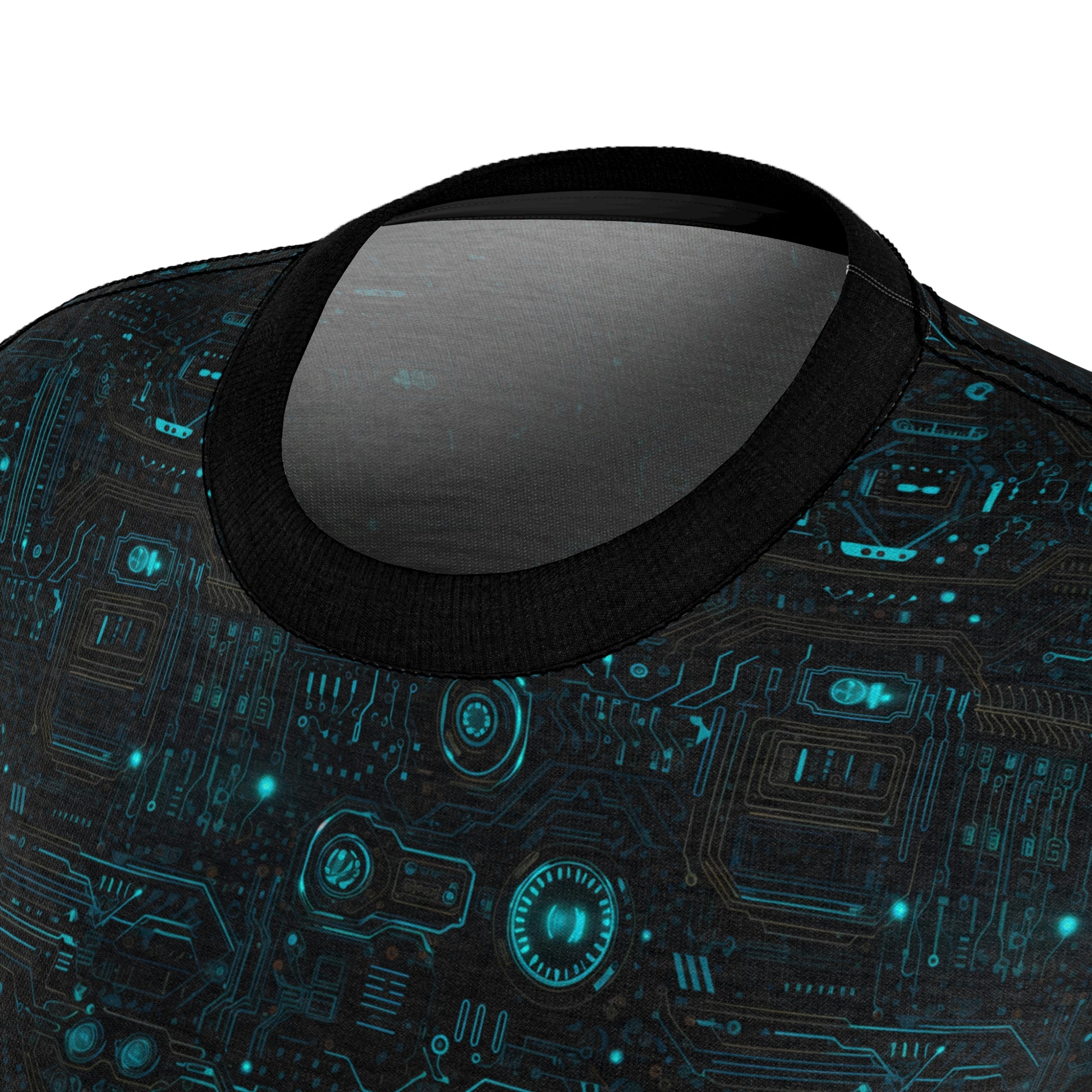 Introducing the Wired for the Future Fitted T-Shirt, a versatile and stylish addition to your wardrobe. Featuring a futuristic circuit pattern in shades of blue, this t-shirt is perfect for tech enthusiasts, gamers, and anyone who loves a unique and eye-catching design.